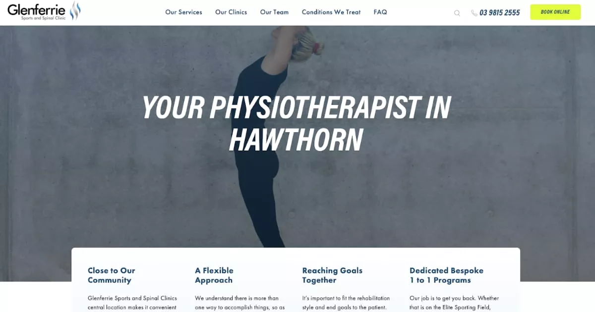Glenferrie Sports & Spinal Clinic Community sports + spinal conditions in the inner-east Physiotherapy; sports rehab; post-op rehab; allied health on-site Hawthorn Clinic page notes multiple services on-site (integrated care) and access to gym/pools via the Hawthorn Aquatic Centre location