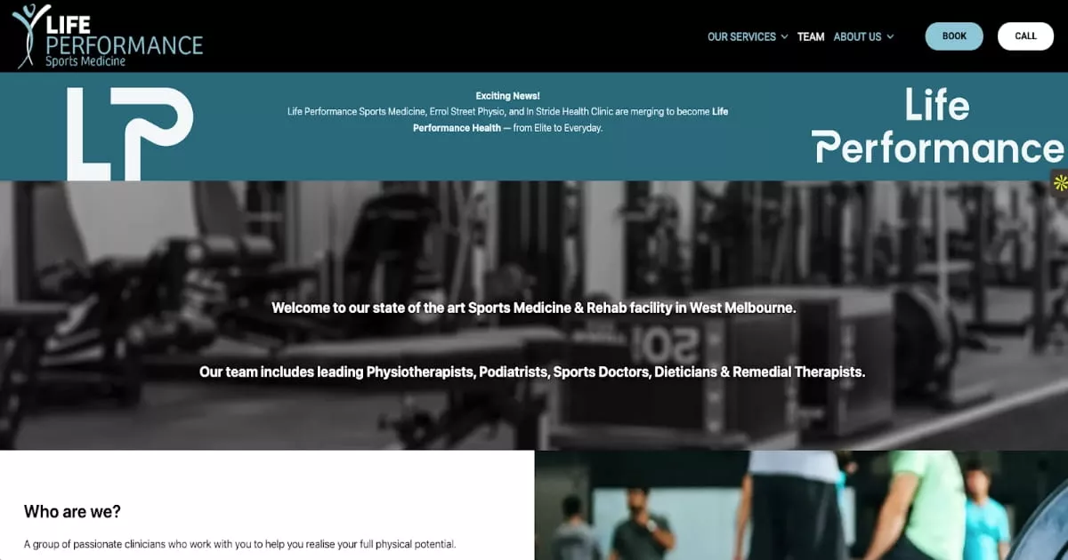 Life Performance Sports Medicine is based in West Melbourne. It combines physiotherapy with sports medicine and performance support.